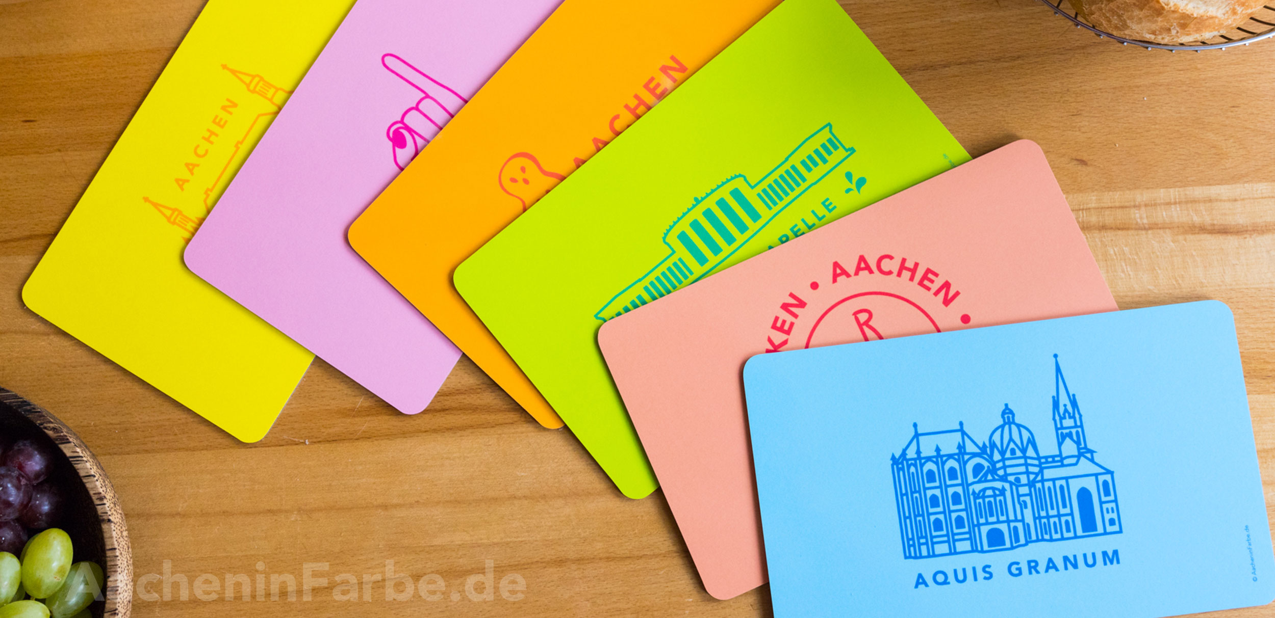 Finde hochwertige Stadtprodukte unserer Kaiserstadt Aachen. Knallig bunte Frühstücksbrettchen. Deinen neuen Lieblingsbecher mit Blick auf den Dom. Öcher Servietten als Hingucker auf deinem Tisch. Und vieles mehr.