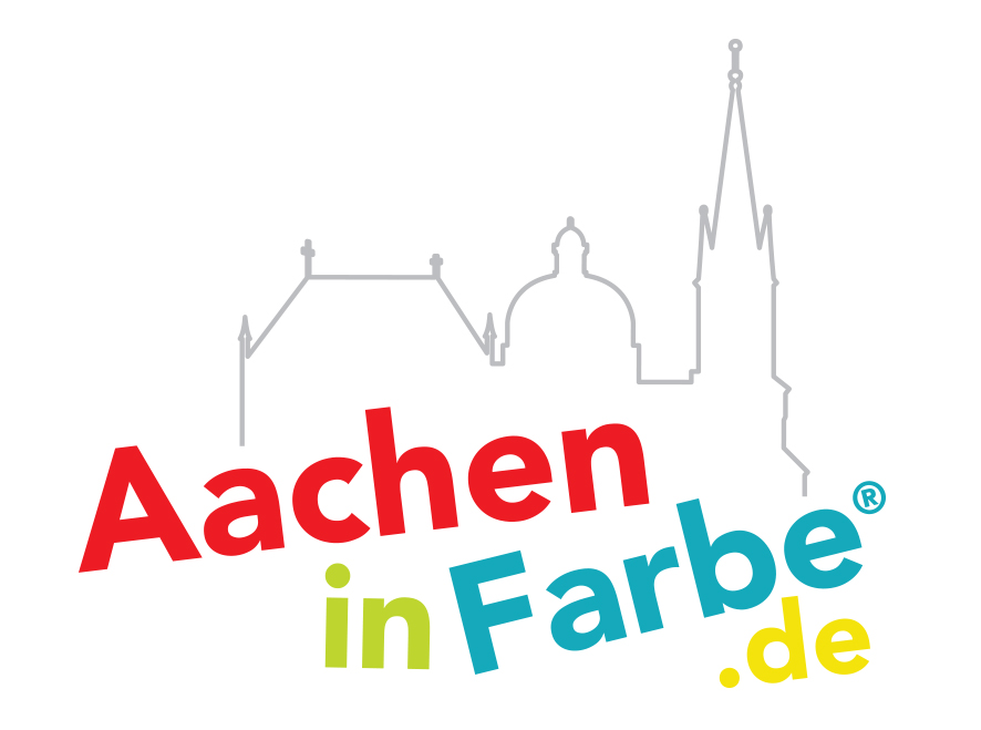 Die Christbaumkugel ist ringsum bedruckt mit glitzernden Linien. Zu sehen sind auf Vorder- und Rückseite der Aachener Dom (gegenüberliegend), sowie der Schriftzug AACHEN (gegenüberliegend).